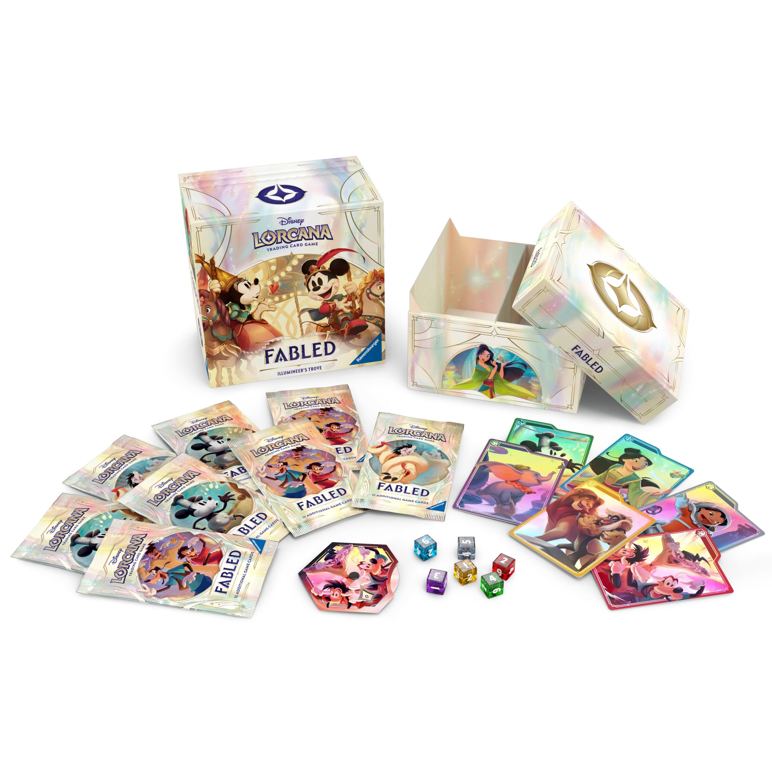 Το Fabled Illumineer’s Trove είναι το απόλυτο premium προϊόν για κάθε συλλέκτη και παίκτη του Disney Lorcana TCG. Αποτελεί την πληρέστερη συλλεκτική εμπειρία, προσφέροντας έναν θησαυρό από περιεχόμενο που συνδυάζει λειτουργικότητα, αισθητική και συλλεκτική αξία.