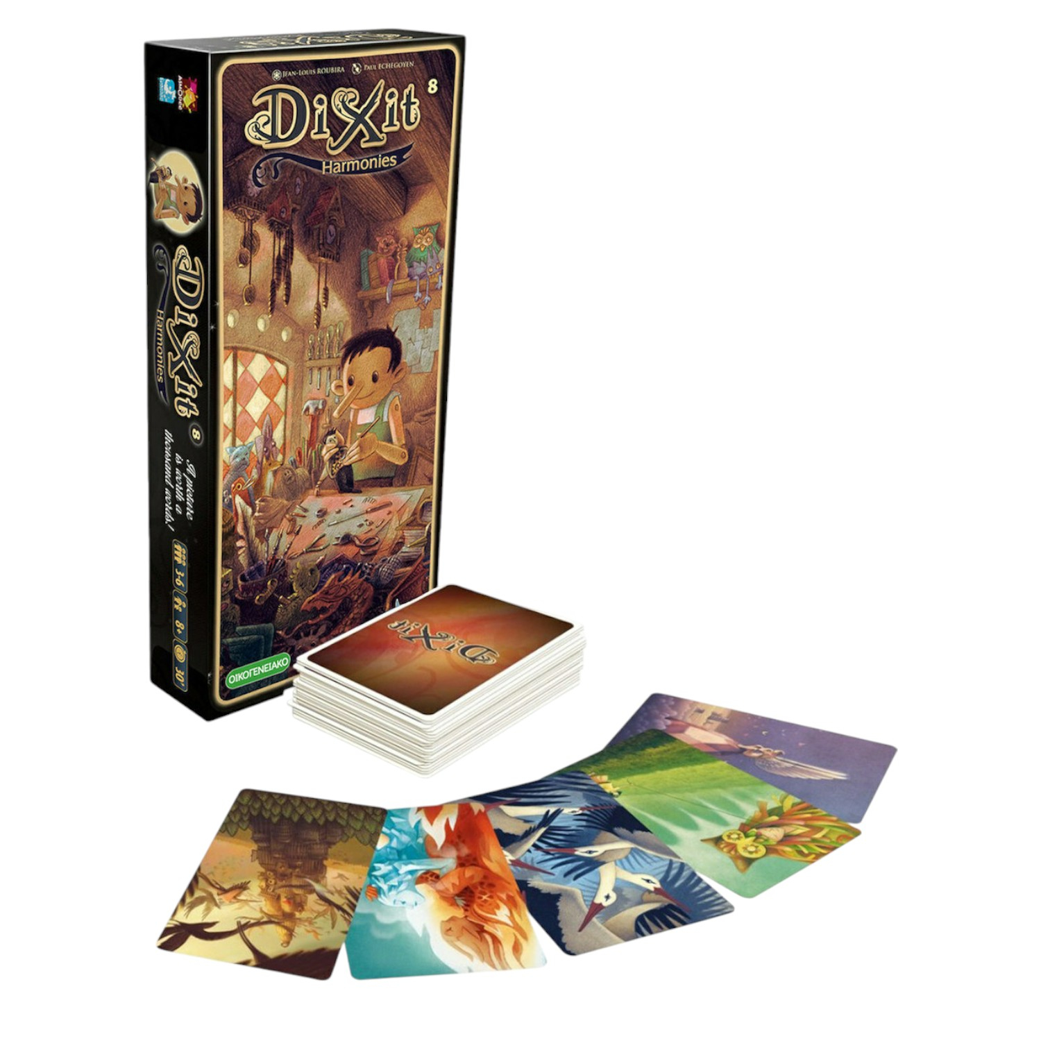 Το Dixit 8 – Harmonies είναι μια επεκταση για το αγαπημένο επιτραπέζιο Dixit, που προσθέτει 84 νέες, μαγευτικές κάρτες με εικονογράφηση υψηλής αισθητικής. Η συλλογή “Harmonies” φέρνει εικόνες γεμάτες συναίσθημα, συμβολισμούς και οπτικές μεταφορές, ιδανικές για να εμπλουτίσουν το παιχνίδι με ακόμη περισσότερη φαντασία και διευρυμένες αφηγηματικές δυνατότητες.