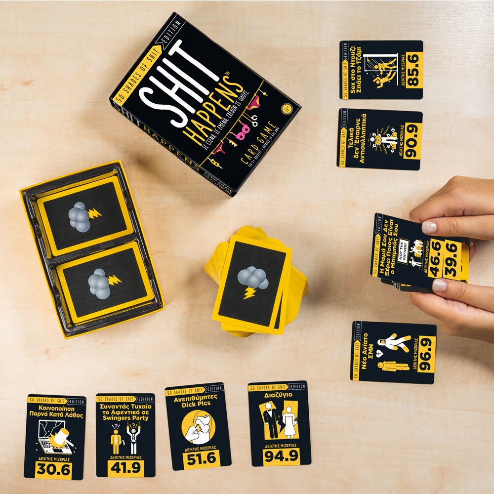 *Το παιχνίδι παίζεται μόνο του ή και σε συνδυασμό με τη βασική έκδοση SHIT HAPPENS για ακόμη περισσότερη διασκέδαση